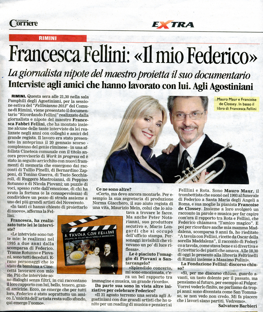 “CORRIERE di ROMAGNA”: “FRANCESCA FELLINI: “il Mio Federico” – intervista a Francesca FELLINI
