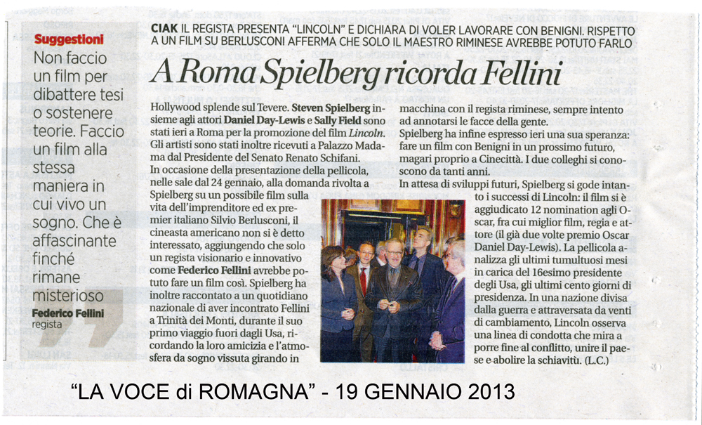 LA VOCE – RIMINI – SPIELBERG cita FELLINI – 19-1-2013