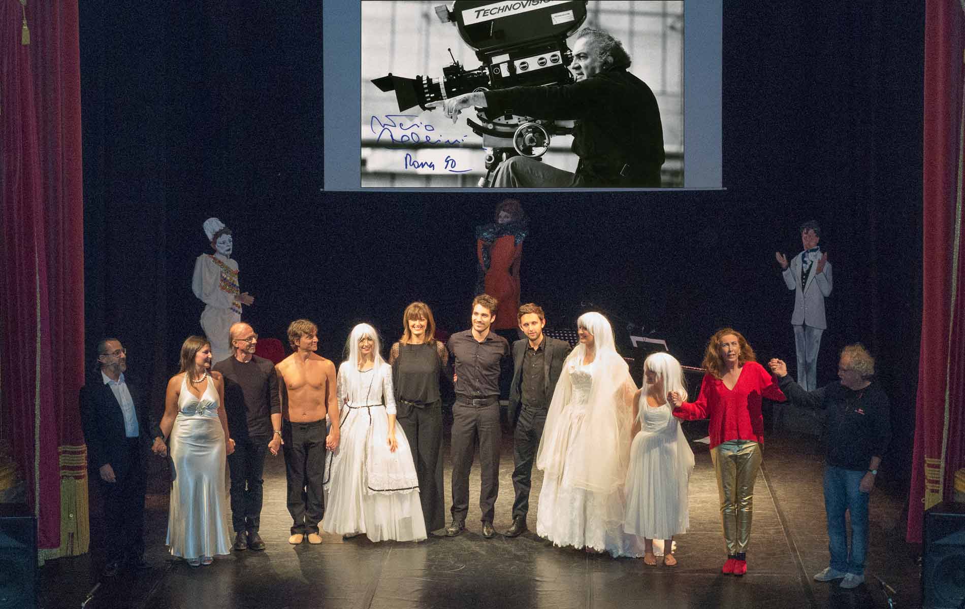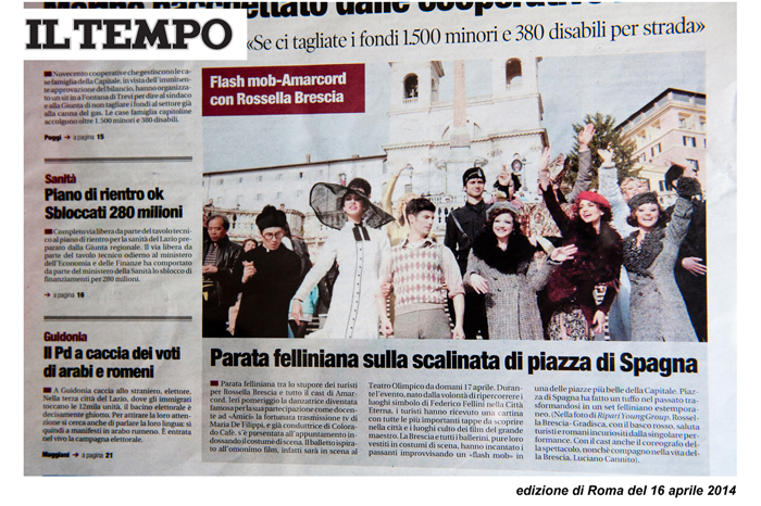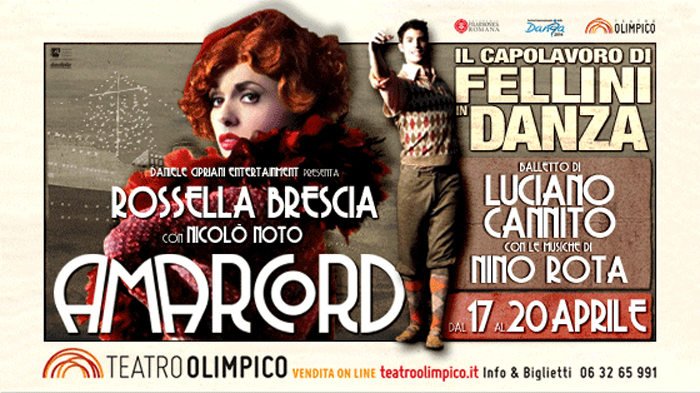 Ispirato e dedicato al rimpianto regista, il balletto Amarcord, rodato e forte di un eccezionale successo di pubblico e critica (anche internazionale: basti pensare che alcuni anni orsono fu rappresentato dal Balletto del Teatro alla Scala nientedimeno che al Metropolitan di New York) e di una lunga tournée in molte città italiane, la tournée si conclude al Teatro Olimpico di Roma dal 17 al 20 aprile, con l’apertura della quarta edizione del Festival internazionale della Danza dell’Accademia Filarmonica Romana e Teatro Olimpico. Per questo revival, presentato dalla Daniele Cipriani Entertainment, il cast di Danzitalia (Italian Touring Dance Company) s’impreziosisce di un nome di grande richiamo: nei panni (Anni Trenta) della mitica Gradisca, l’apprezzatissima ballerina e attrice Rossella Brescia che trova qui un ruolo d’elezione, da colorare con sfumature sensuali ma anche sognanti.