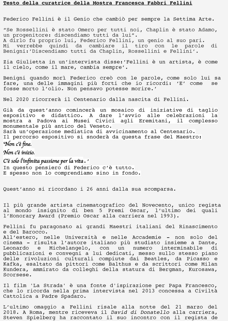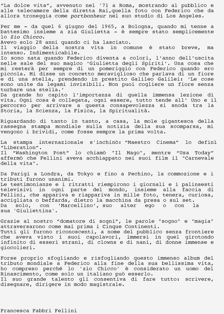 Testo introduttivo di Francesca Fabbri Fellini – Nipote per DNA del Maestro