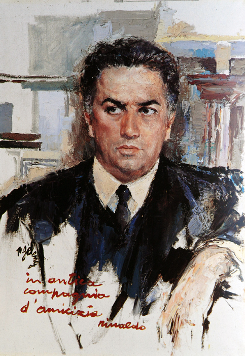 Averlo accanto nei miei film, sapere che nel suo studio, o in qualche provvisorio stanzone di Cinecittà, fa il suo lavoro, dipinge i quadri e i ritratti che gli ho commissionato, mi comunica lo stesso conforto di una volta, quel caldo sentimento di un’amicizia, di una compagnia che mi rassicura, mi fa sentire più giovane; come quando nei ristoranti, sulle spiagge, o in case sconosciute, intervenendo in tempo, metteva rimedio con quattro tocchi sicuri a quei disastrati conati di ritratto che io, accanto a lui, mi gettavo sfacciatamente a promettere e disinvoltamente ad eseguire, rischiando di screditare per sempre la credibilità della nostra associazione artistica.
