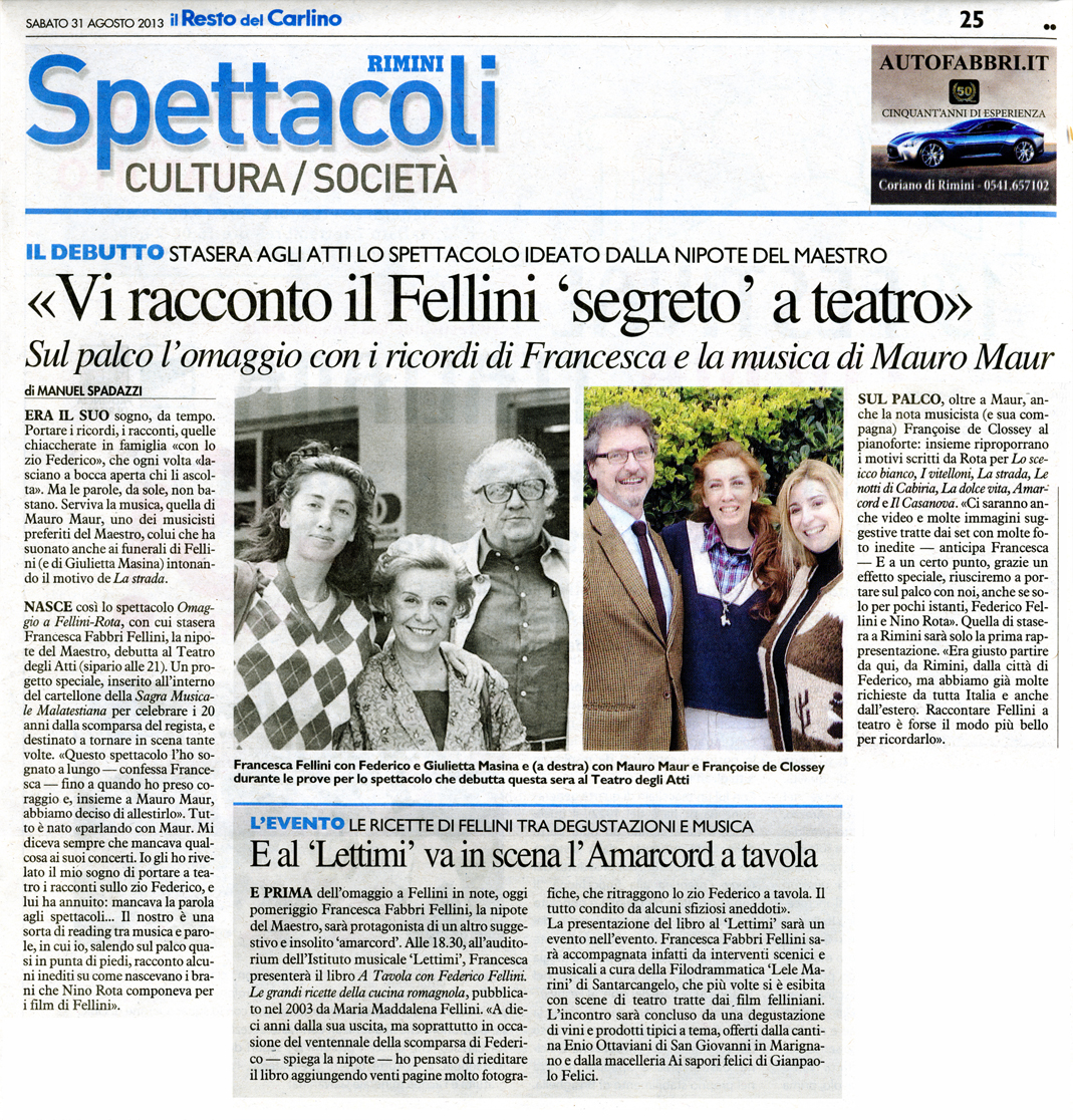Il RESTO del CARLINO: “Vi racconto il Fellini ‘segreto’ a teatro” – intervista a Francesca FELLINI