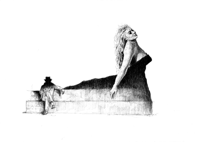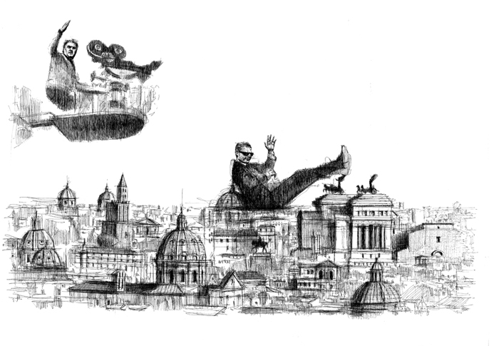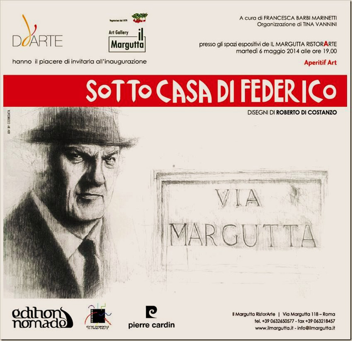 Roberto Di Costanzo insegue, pittoricamente, i momenti felliniani con raffinata attenzione. Lo appaga la bellezza visionaria e onirica, lo irretisce la denuncia affabulata e giocosa. Resta in punta di china leggero sulla suggestione di un sogno che ancora ci parla. La mostra e’ stata realizzata con il patrocinio del maestro Pierre Cardin, Il Centro Sperimentale di Cinematografia, Editions Nomades.
